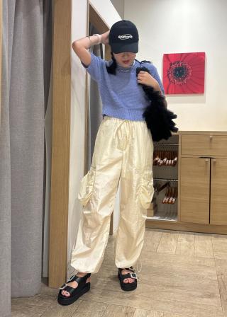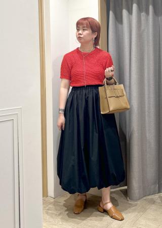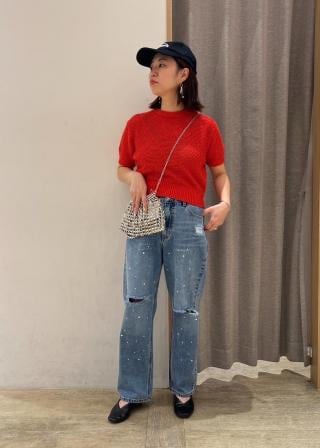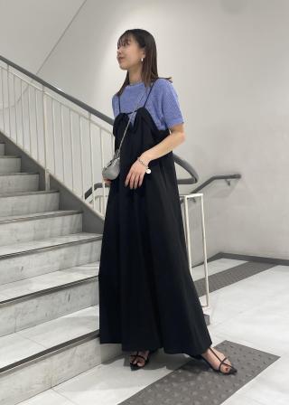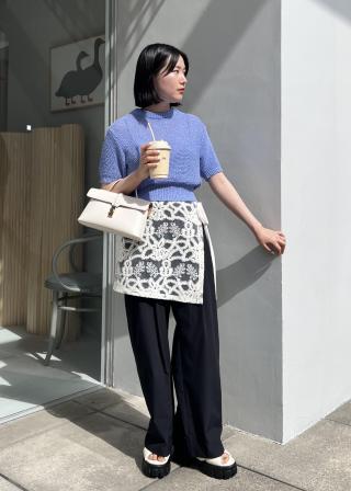 個人的に短丈が好きですが、丈感もばっちりで露出しすぎずちょうどよい肌見せ、編み目が細かいのでキャミの下に着るブラの色があまり見えないのも良い。