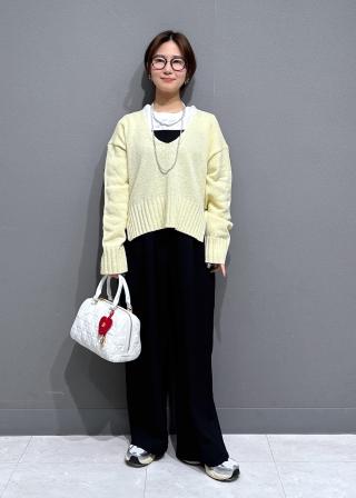 シャープなディープVネックがスッキリとした印象を与えてくれるニット。