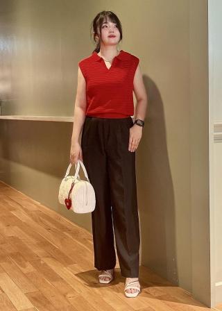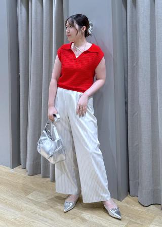 きちんと感を兼ね備えたニット素材を使用した、衿つきスキッパー。