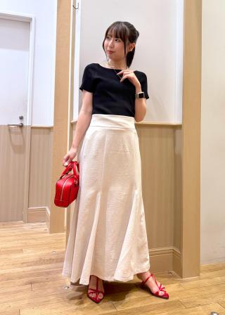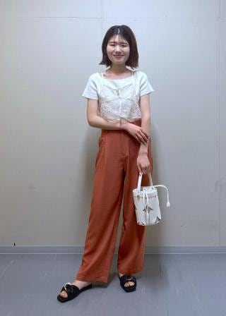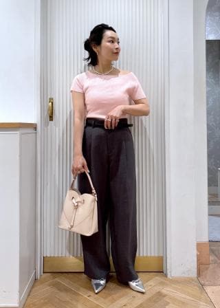 パンツにインにしたシンプルなスタイリングも絶妙な肌見せで今年らしく見せてくれます。