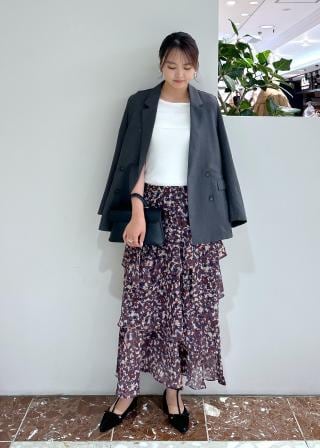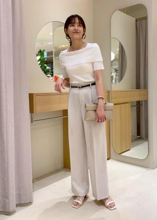 肩の露出が少なめなのでお仕事づかいもしやすく、合わせやすい1着!