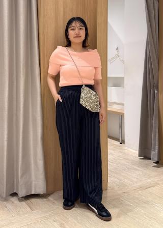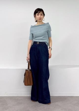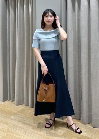 肩の露出が少なめなのでお仕事づかいもしやすく、合わせやすい1着!