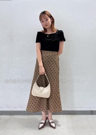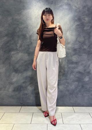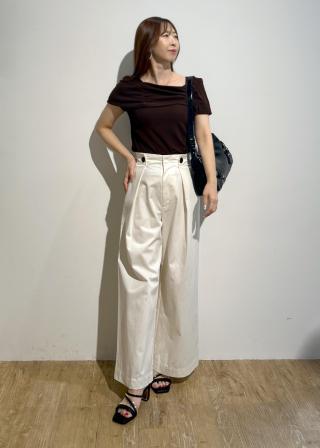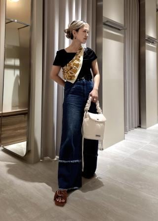 ワイドパンツで甘さを抑えたスタイリング、マーメイドやナロースカートで女らしいスタイリングがおススメ。