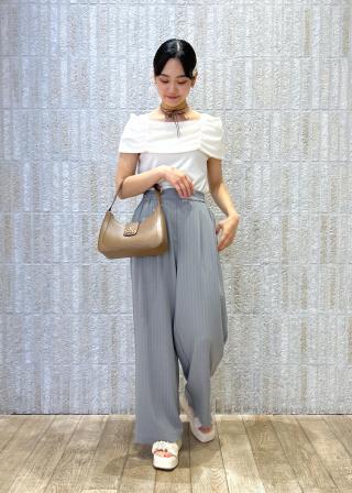 ワイドパンツで甘さを抑えたスタイリング、マーメイドやナロースカートで女らしいスタイリングがおススメ。