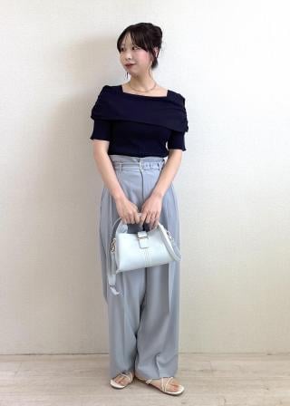 ボトムは、ウエストインでマーメイドスカート合わせがVISらしくておススメですが、ベルテッドワイドパンツ(品番BVS16300)とのコーディネートもスタイリッシュで◎!