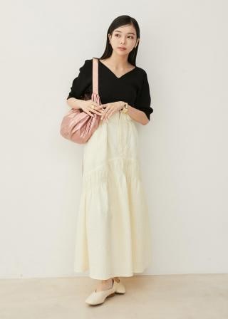 ハートネックはそこまで大げさではないので、大人っぽく着られるデザインです。