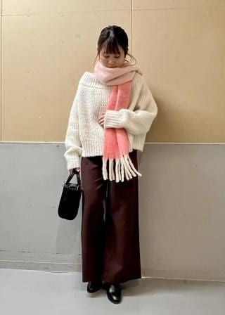 かなりショート丈なので、ボトムスには注意が必要です。わたしは中にブラウスを着てボトムスインしないか、ハイネックワンピースなどを合わせています。