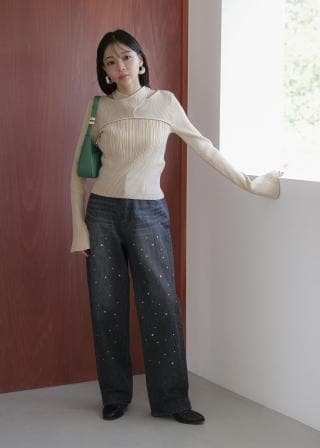 身体にフィットするニットなので、どんなボトムスとも合わせやすい1枚です。