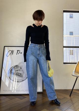 身体にフィットするニットなので、どんなボトムスとも合わせやすい1枚です。