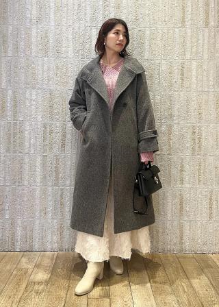 ・コクーンシルエットなので、衿元も後ろに抜け感を出して女らしく着るのがおススメです。