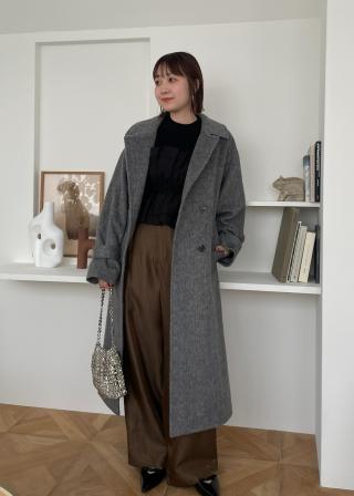 裾から出てるニットリブ部分はボトムにインすると決まりやすいです。