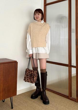 シャツやぴたニットとのレイヤードアイテムとしてスタイリングしていただくのがおすすめ。ボタンを開けて首元すっきりさせて着てもかわいいです。