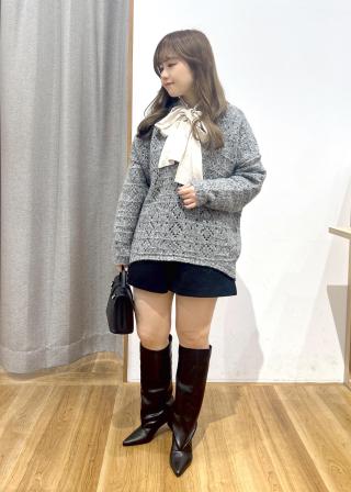 レースの様な編み地もポイントで着るだけで主役になるニットです