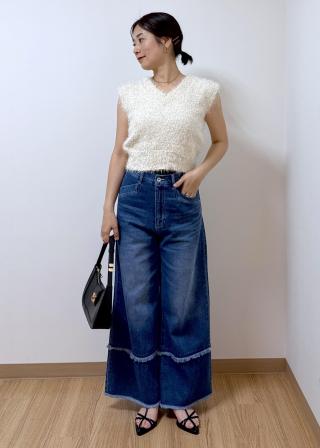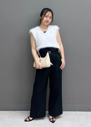 ボトムを選ばず着回ししやすいデザインですが、同月展開のラップデザインパンツとスタイリングがイチオシ。