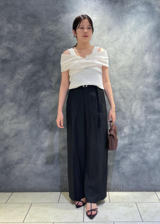 ねじれデザインのオフショルダーはランダムにねじれているので他にはないこだわりのデザイン。