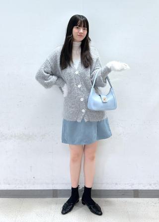 手元のフェザーがコーデのアクセントになります。