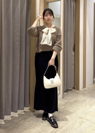 外してもベーシックに着まわしやすいアイテムにしました。リボンはたっぷりと大き目でニットとのコントラストがデザインポイントです!