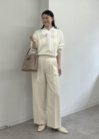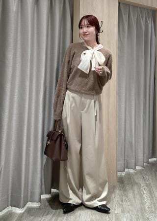 外してもベーシックに着まわしやすいアイテムにしました。リボンはたっぷりと大き目でニットとのコントラストがデザインポイントです!
