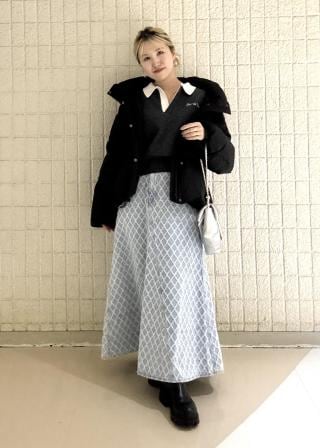 スカートでもパンツでも合わせやすいコンパクトな丈感でスッキリ合わせていただけます!
