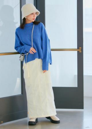 サイドスリット入りなのでブラウスやシャツとのレイヤードもすっきりと決まります◎