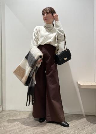 Fサイズはワイドパンツと合わせたリラックススタイルや、スカートなと合わせた女性らしいスタイリングがおすすめです。