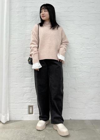 Fサイズはワイドパンツと合わせたリラックススタイルや、スカートなと合わせた女性らしいスタイリングがおすすめです。