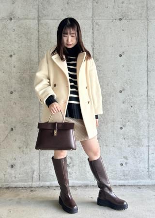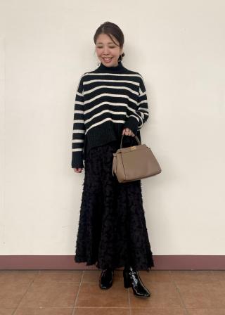 Fサイズはワイドパンツと合わせたリラックススタイルや、スカートなと合わせた女性らしいスタイリングがおすすめです。