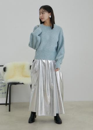 華やかさをアップする毛足のあるラメニット糸はキラキラっとインパクトある1着です。