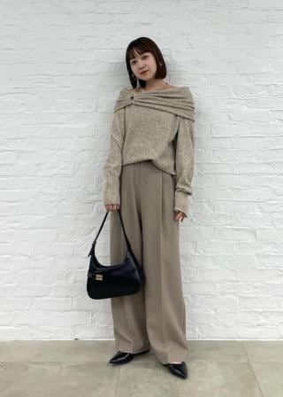 肩を出して女らしく着用したり、衿部分を肩にフワッと載せて可愛く着用したりできて、その日の気分やボトムでのアレンジで様々な顔のスタイリングが出来るアイテムです。