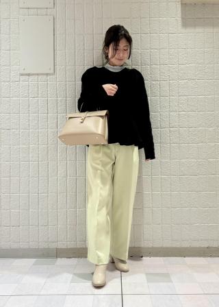 素材もフェミニンすぎずカジュアルでテーパードパンツやデニム等ボトムを選ばず楽しめます。
