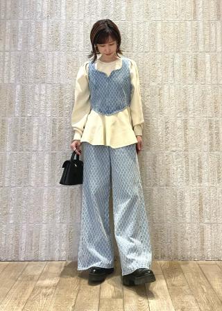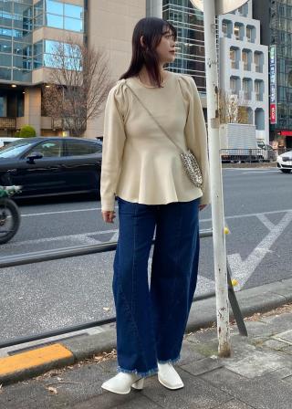 素材もフェミニンすぎずカジュアルでテーパードパンツやデニム等ボトムを選ばず楽しめます。