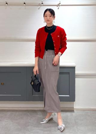 ジャケットなどのインナーに、レッドやピンクカラーを忍ばせるスタイリングも◎