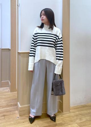 首周りはタートルネック程高さがないので、窮屈さは感じません。シンプルに使えるニットなので、カジュアルからオフィススタイル様々なシーンで使えますよ。