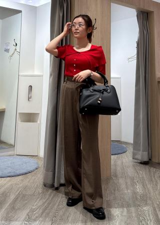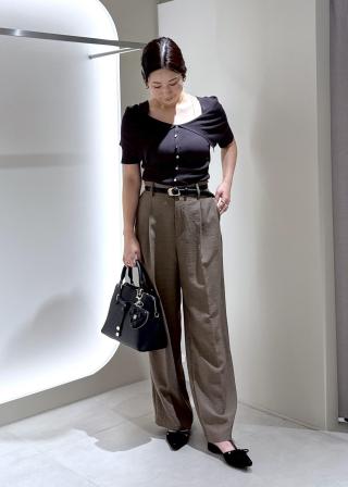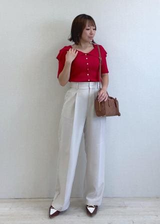 コンパクトなトップスなので、パンツでもスカートでも好相性。
