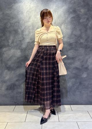 裾に広がるワイドパンツやマーメイドスカートの合わせがおすすめ。