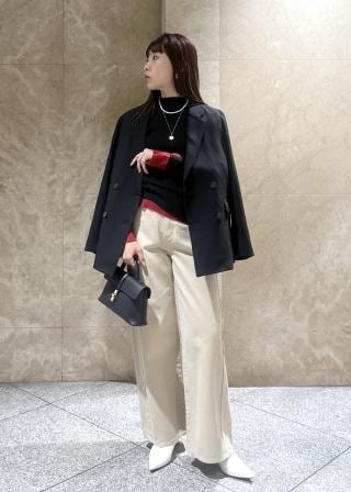 首元のプチハイネックが一枚着としてもOKですが、ジャケットや羽織りアウターなどからの見え方が絶妙にスタイリングアップしてくれます。
