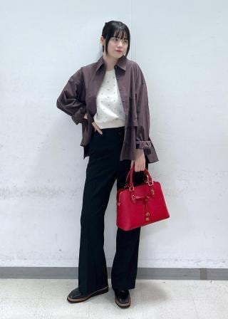 美easyのパンツ(品番:BVS65100)に合わせて、シックなスタイリングにも演出でき、休日にはデニムに合わせて甘めカジュアルなスタイリングもかわいく着こなして頂けます。