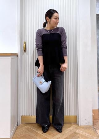 ニットもウエストまでリブ編みにしているのですっきり着ていただけます。程よくフィットするカットリブは上にジャケット等羽織ってももたつかずに合わせやすいです。