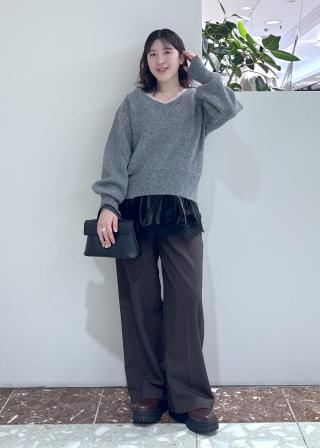 ・Vネック×衿元レースが一枚で抜け感のある華やぎを与えてくれる温かニット。