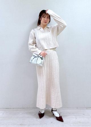 セットアップ対応できるのケーブルニットIラインスカート(BVC75030)の合わせが一番おすすめ!