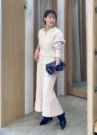 セットアップ対応できるのケーブルニットIラインスカート(BVC75030)の合わせが一番おすすめ!