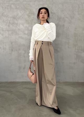 1枚で女性らしく着れるシルエットなので、ジャケットなどのハンサムなアイテムのインナーにおすすめです。