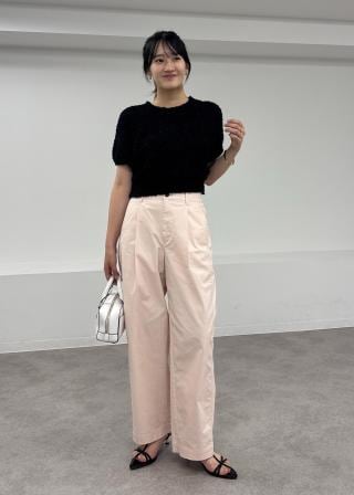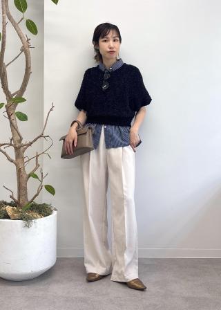 ワイドパンツやタックパンツに合わせて、抜け感のある大人カジュアルに。