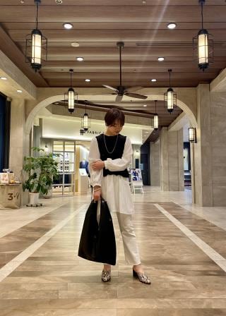 すっきりとパンツスタイルで合わせるのがバランスが良いです◎