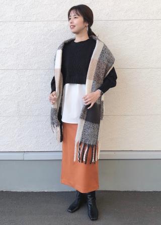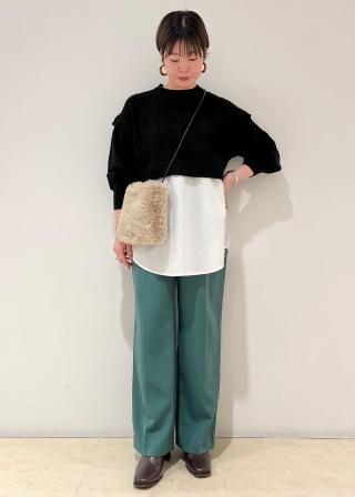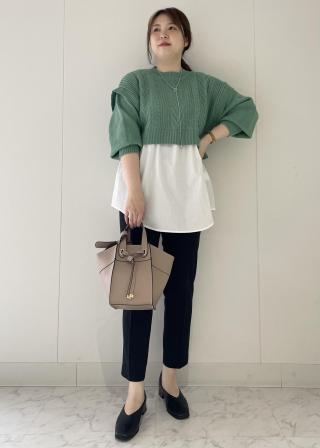 ニット部分が短めなので、低身長でもデニムやフレアパンツと合わせてもバランス良く着れました。