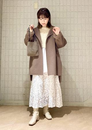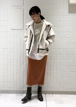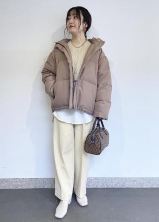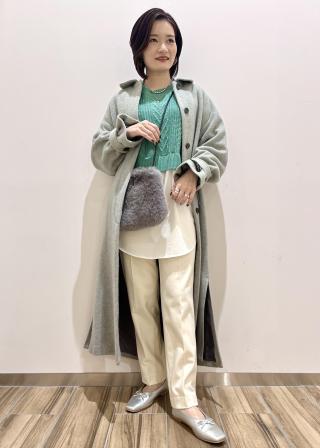 ケーブルのニットとレイヤードしている風になっていて、カジュアルに着こませます。