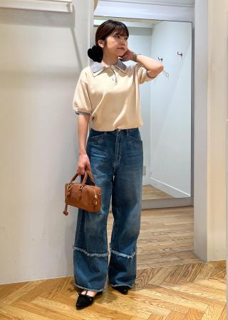 トレンドのダブル襟とキラッとメタル釦がかわいい総針の薄手半袖ニット。コンパクトだがボトムスと合わせやすいフォルムです。袖のぽわんと感も二の腕を隠しながら可愛さもプラス。