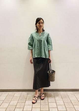 モロッコに見られるモザイク柄のようなモチーフの刺繍柄を使用したブラウスです。