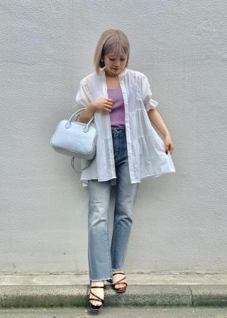 薄くて涼しい生地で、中に見えても良いキャミと合わせて着たいです。