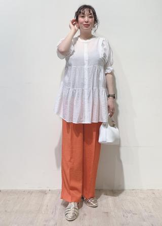 私は細身なカラーパンツや大人丈のショートパンツと合わせています。